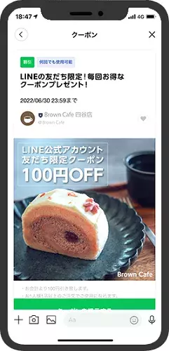 友だち限定のお得な情報としてクーポンを配信することで、特別感が高まり来店増加に繋がりやすくなります。