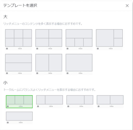 リッチメニューのテンプレートを選択します。
